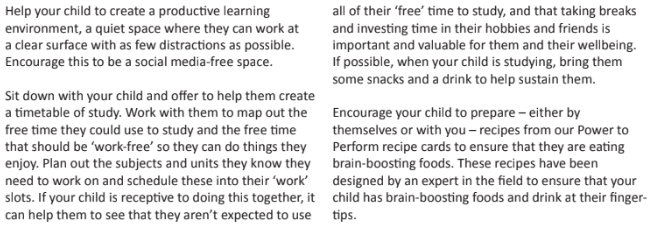 TOP TIP 3: To help your child control different aspects of their life to help them perform better when it comes to exam time next year.